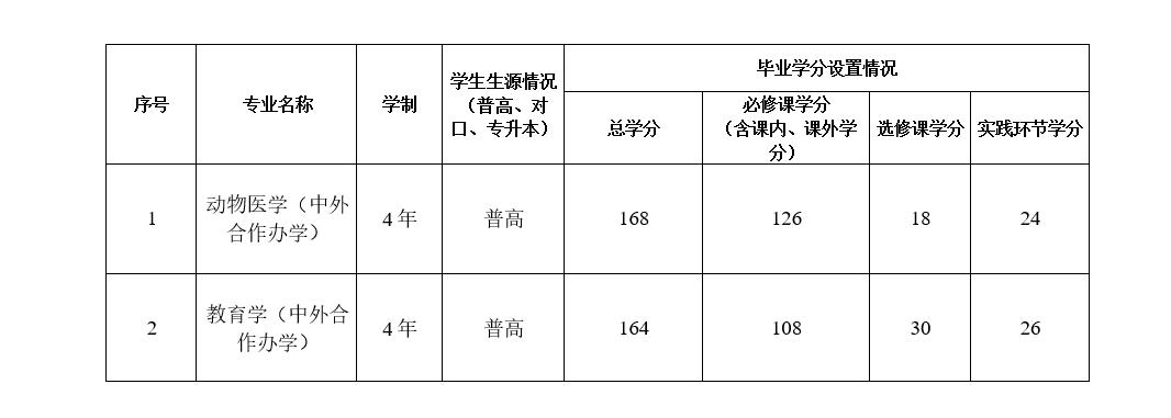 河南科技学院国际教育学院2025届普通本科毕业生分专业毕业学分标准汇总表